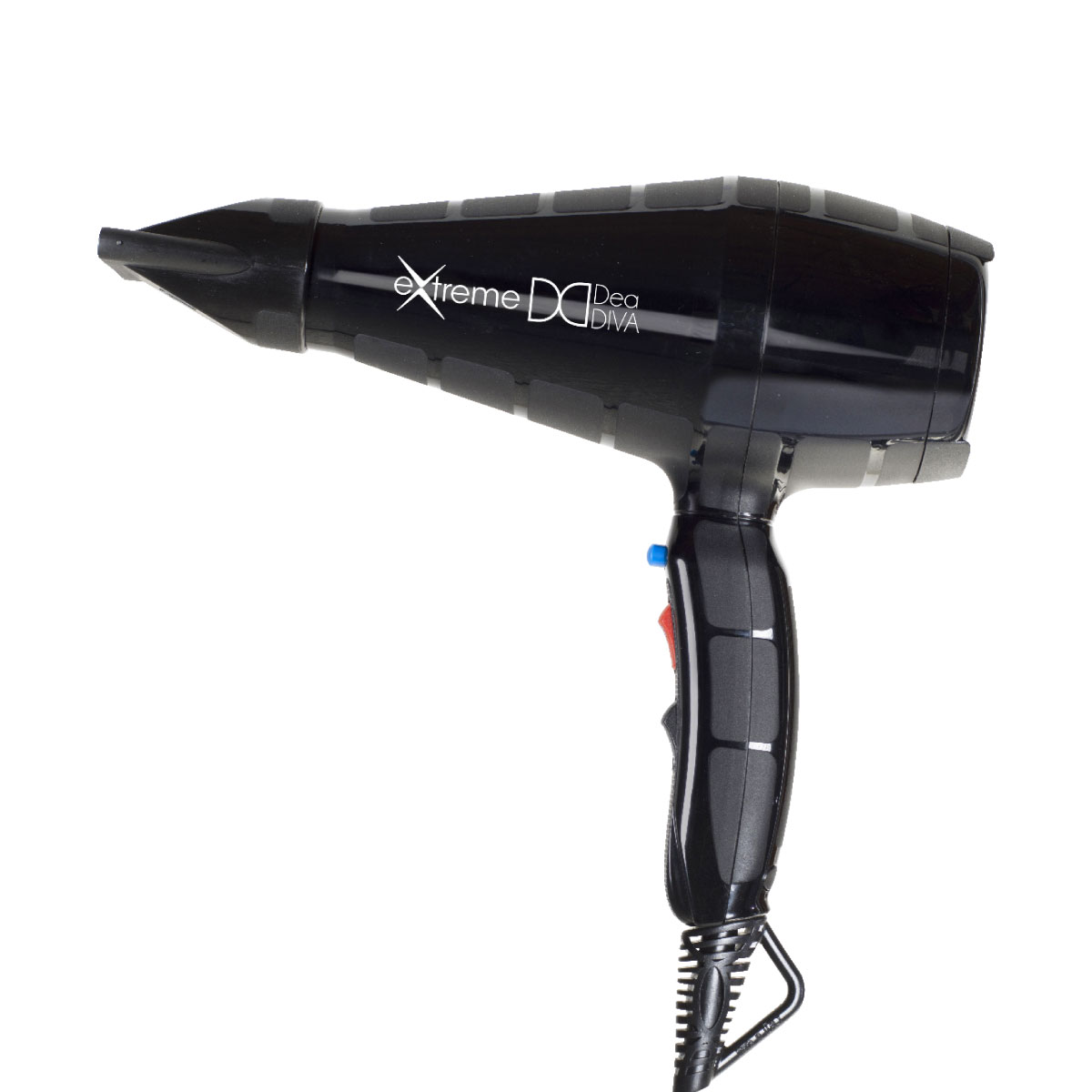 The hair dryer Extreme has been designed with to guarantee a long-lasting fold on any type of hair. The main feature is a very fast drying thanks to its powerful air flow that penetrates deep and reduces by 30% the drying time compared to normal hair dryers. Designed with very thin profiles of the Styling nozzle and taking advantage of its 2200w of power, it ensures a straightening effect even on difficult hair. The ceramic coated front grille makes the hair soft, hydrated and enhances the shine. The handle designed to facilitate its use leaves more freedom of movement to the thumb and index, the inclination of the handle decreases fatigue during use. The 3m power cable allows for a wide movement and its particular flexibility prevents it from breaking.